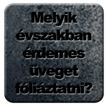 Megrendelő szempontból nézve ennek az évszaknak a hátránya, hogy minden komolyabb üvegfóliás műhelyben hónapos (!) várólisták vannak, soron kívül pedig vagy nem vállalja senki az autóüveg fóliázását, vagy ez jelentős többletköltséggel jár.
